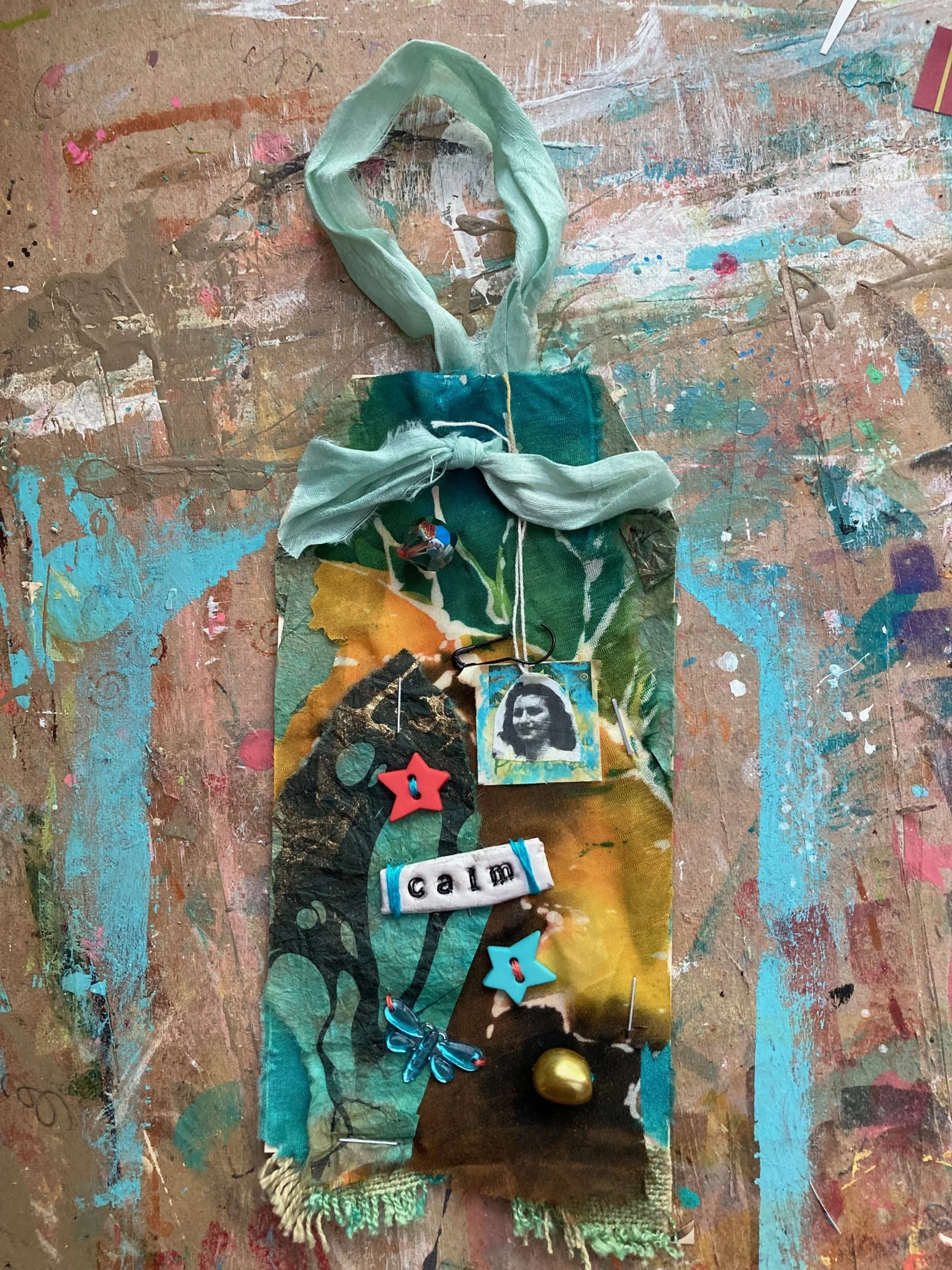 If you belong to a book club or insist on using pencil and paper to keep lists, this workshop is perfect for you! We’ll be using a very cool technique to create bookmarks (the perfect little gift) and decorate the covers of these very cool lined kraft paper notebooks. You’ll also have the option to create some lovely little prayer flag pins - perfect to put on a scarf or blouse, pin to your shopping bag, or other objects to remind you of what’s important in life. July 2024 workshop